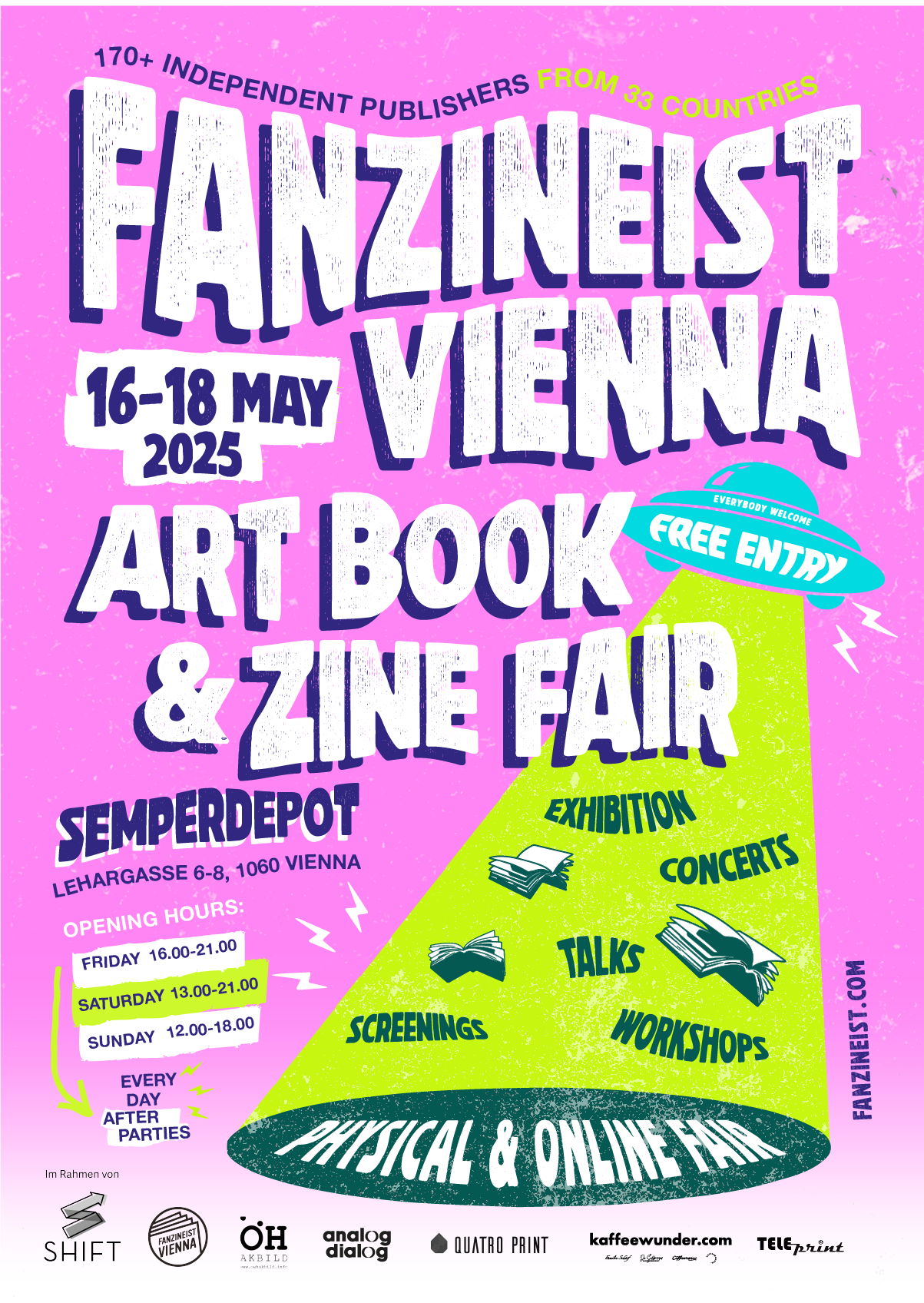 - Fanzineist Vienna Art Book & Zine Fair, Atelierhaus der Akademie der bildenden Künste Wien – Semperdepot, Vienna, AT (16-18 May 2025)