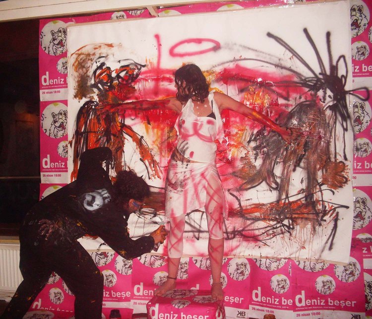 Bendeniz < All Performances Bendeniz, action painting & performance, Istanbul, Turkey (2009) Featuring Lucia Mirnar Martinez and Alper Akçay < Previous Next >