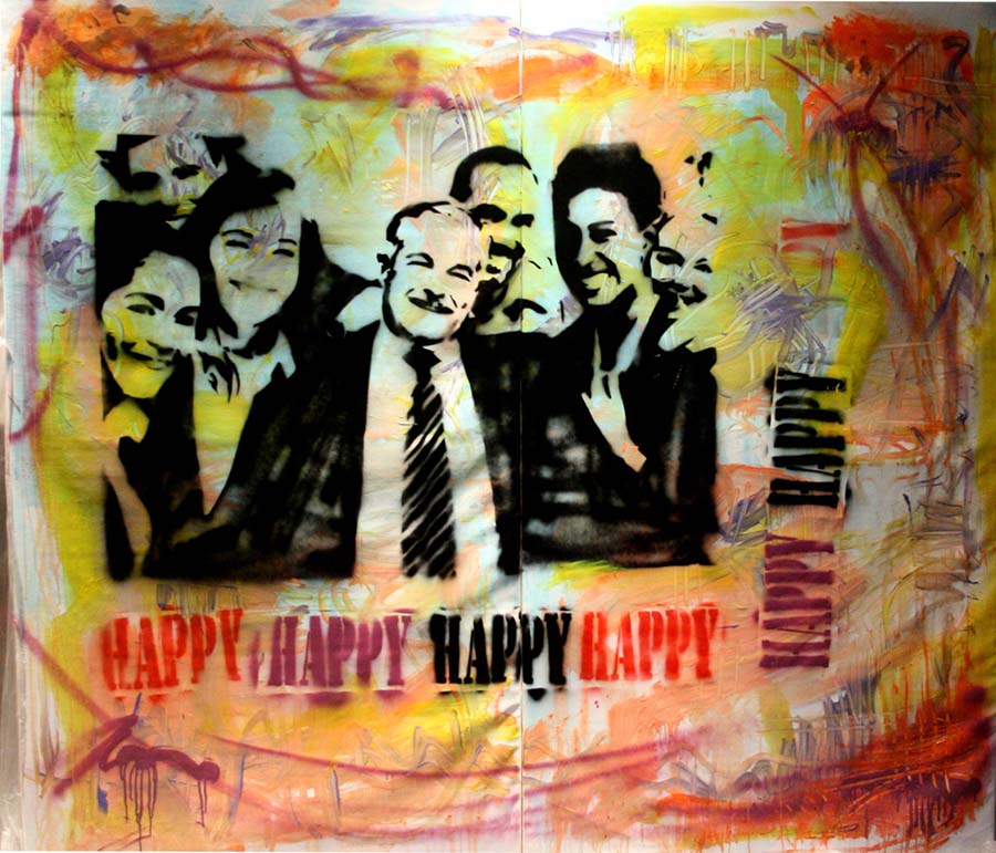 In this action painting performance, music is formed depending on the painting, and painting is formed depending on the music. In the Happy Happy, Deniz Beşer accompanies the existing improvised music with the harmonica while painting the canvas. Veysel Denec’s psychedelic compositions on electric guitar and Yiğit Yemez’s rhythm understanding on drums strengthened the performance.