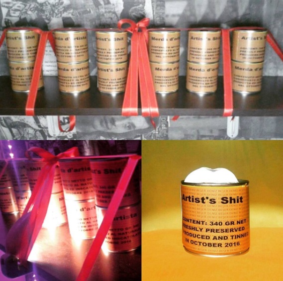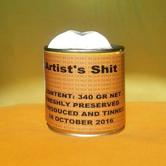 I was able to make a hasty presentation to my curator (Küratörüme alelacele sunum yapabildim), 12 labeled cans, 92×37 cm, 2016