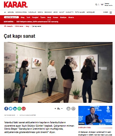Sanat atölyelerinin kapılarını İstanbulluların ziyaretine açan ‘Açık Stüdyo Günleri’ başladı. Çalışmanın mimarı Deniz Beşer “Sanatçıların üretimlerini işin mutfağında, atölyelerinde gösterebilmesi çok önemli” diyor.