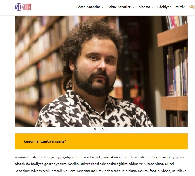 ”Görsel sanatçı, küratör, bağımsız yayıncı… Deniz Beşer ile gerçekleştirdiğimiz keyifli söyleşide; çalışmaları, Açık Stüdyo Günleri, pandemi sürecindeki üretimleri, güncel-gelecek sanat piyasası ve Heyt be! Fanzin kolektifi hakkında yazıştık…”
