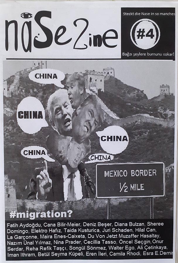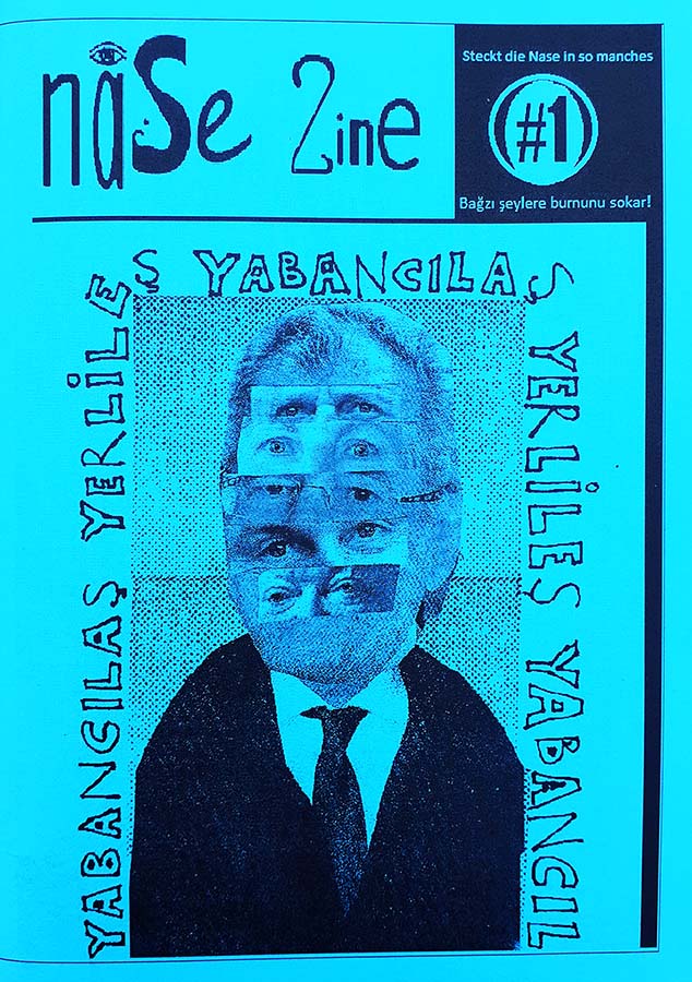 The Name of the Zine is inspired by the phrase “to stick your nose in…” which exists in Turkish (‘herşeye burnunu sokmak”) as well as in German (“die Nase in etwas stecken”). The collective of Nase Zine wants to share with you the joy of sticking your nose in a lot of things.